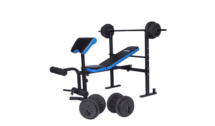 Bench can be adjusted to flat incline and decline Bar and weights 70. Condition is Used but in very good condition. A short video comparing features of the Mens Health Active Bench vs the Pro Power benchBoth benches are suitable for home use and are available for 80.