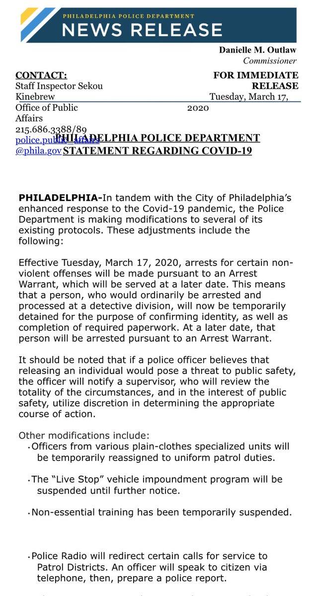 Steve Keeley On Twitter Breaking Phillypolice Officers Instructed To Stop Making Arrests For Following List Of What Are Consider Non Violent Crimes Here Is The Email Sent To City Police Officers Telling Them